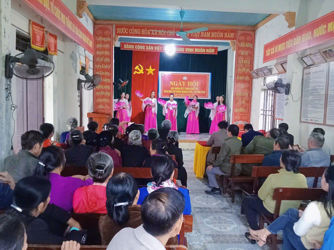 Sau phần văn nghệ chào mừng với những tiết mục đặc sắc, hấp dẫn, các đại biểu và nhân dân đã cùng nhau ôn lại truyền thống 95 năm vẻ vang của Mặt trận Dân tộc thống nhất Việt Nam - Ngày truyền thống Mặt trận Tổ quốc Việt Nam. Từ những ngày đầu thành lập, Mặt trận đã tập hợp các tầng lớp nhân dân, cùng Đảng và Chính phủ đấu tranh giành độc lập dân tộc, bảo vệ chủ quyền và thống nhất đất nước. 95 năm qua, Mặt trận đã trở thành bức tường thành vững chắc của khối đại đoàn kết dân tộc, là cầu nối giữa Đảng, Nhà nước và nhân dân, góp phần làm nên những thắng lợi quan trọng trong công cuộc xây dựng và bảo vệ Tổ quốc Việt Nam xã hội chủ nghĩa.
