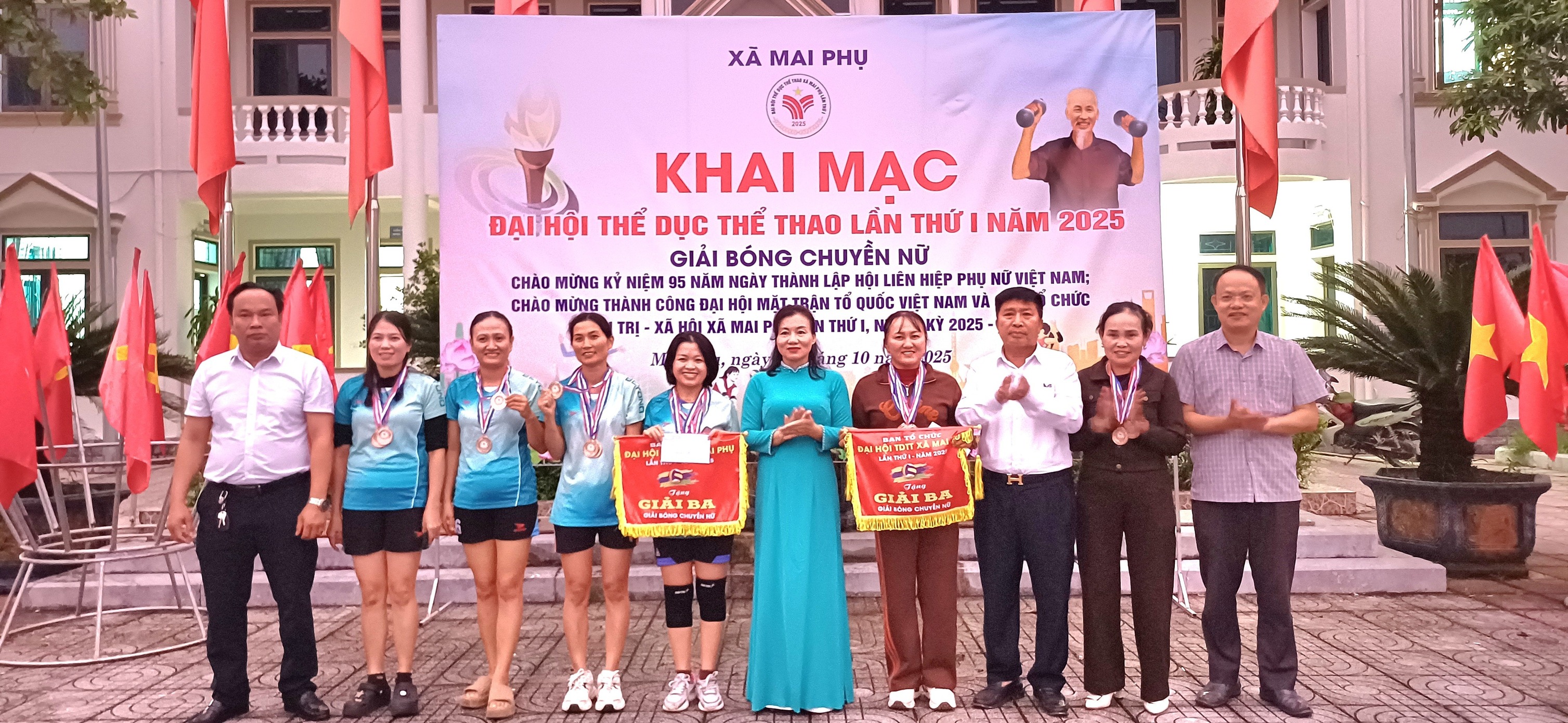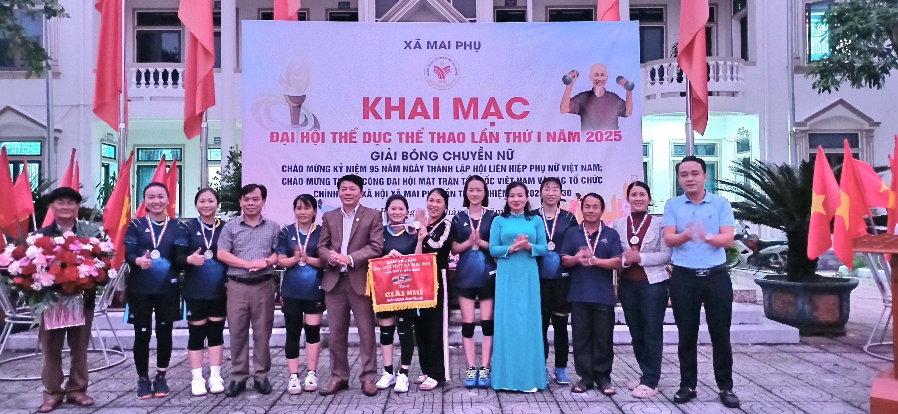 Chiều ngày 25/10, xã Mai Phụ tổ chức Lễ trao giải và bế mạc Giải bóng chuyền nữ năm 2025 chào mừng thành công Đại hội MTTQ, các đoàn thể chính trị nhiệm kỳ 2025 - 2030, kỷ niệm Ngày thành lập HLHPN Việt Nam 20/10 và Đại hội TDTT xã Mai Phụ lần thứ I. Dự Lễ bế mạc có các đ/c lãnh đạo xã.