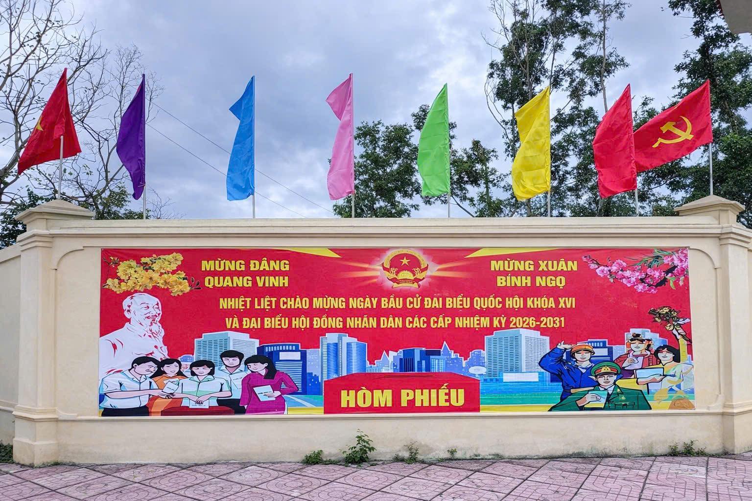 Những ngày này, từ trung tâm xã đến các thôn, các hoạt động hướng về cuộc bầu cử đại biểu Quốc hội khóa XVI và đại biểu HĐND các cấp nhiệm kỳ 2026-2031 lan tỏa sâu rộng. Cờ Tổ quốc, băng rôn, pano, khẩu hiệu được trang trí trang trọng tại trụ sở cơ quan, trường học, khu dân cư..., tạo diện mạo rực rỡ, phấn khởi.