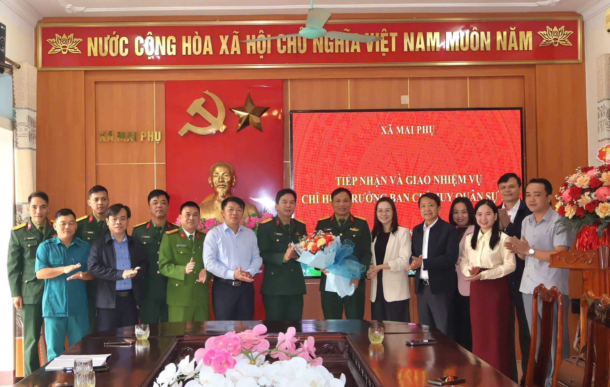 Sáng ngày 15/01/2026, xã Mai Phụ tổ chức Lễ tiếp nhận và giao nhiệm vụ Chỉ huy trưởng Ban Chỉ huy Quân sự xã theo quyết định của Bộ CHQS tỉnh Hà tĩnh về công tác cán bộ. Tham dự buổi lễ có Thượng tá Dương Ngọc Tiệp, Phó Tham mưu trưởng Bộ Chỉ huy Quân sự tỉnh cùng các đồng chí đại diện các phòng, ban chuyên môn; phía xã có các đồng chí Thường trực Đảng uỷ, TT HĐND, lãnh đạo UBND, đại diện Ủy ban MTTQ, BCH Quân sự xã.